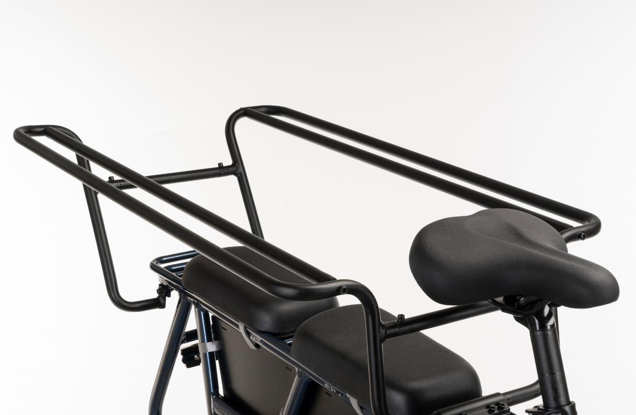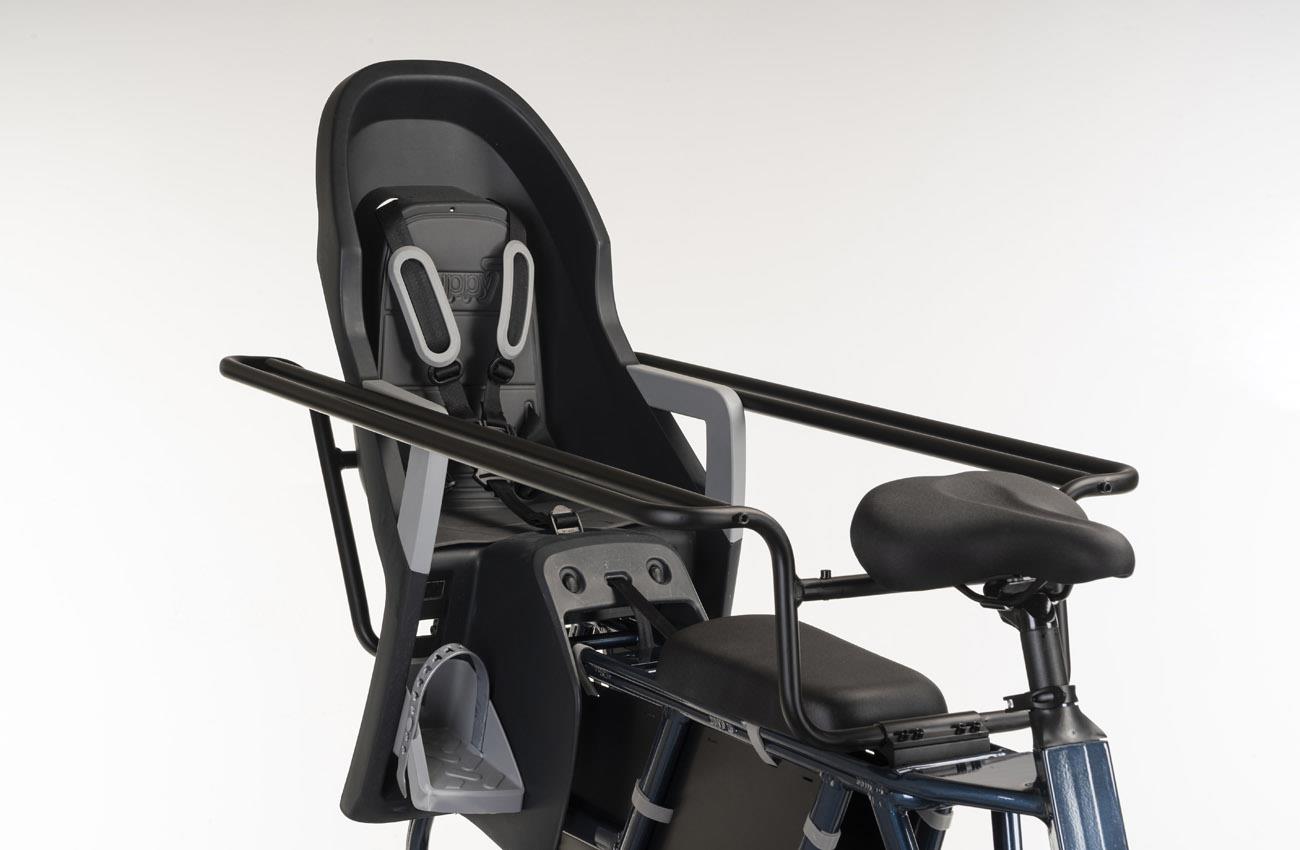 Pode levar duas cadeiras de criança ou uma cadeira e uma criança maior.