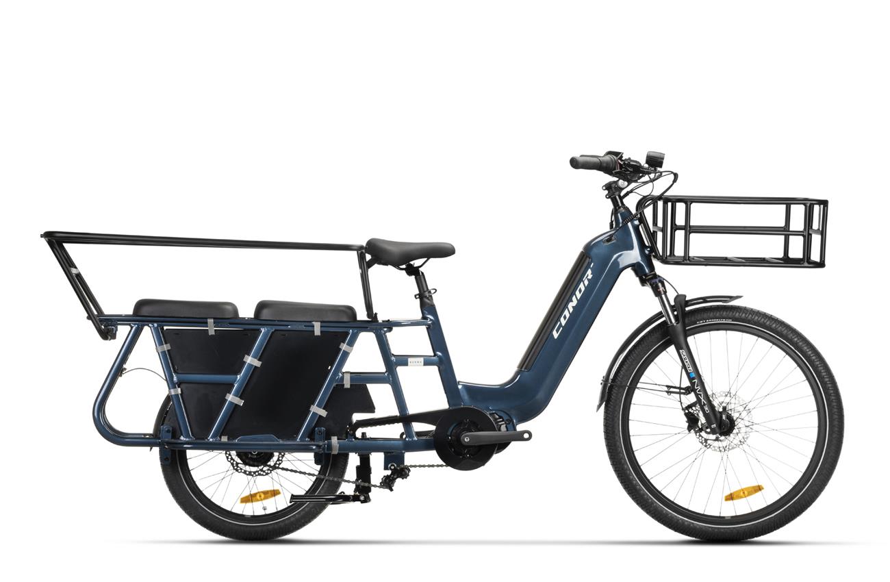 A Conor Berna 20 é uma cargo bike eléctrica do tipo longtail com muita capacidade de carga na versátil estrutura traseira e no enorme cesto frontal.