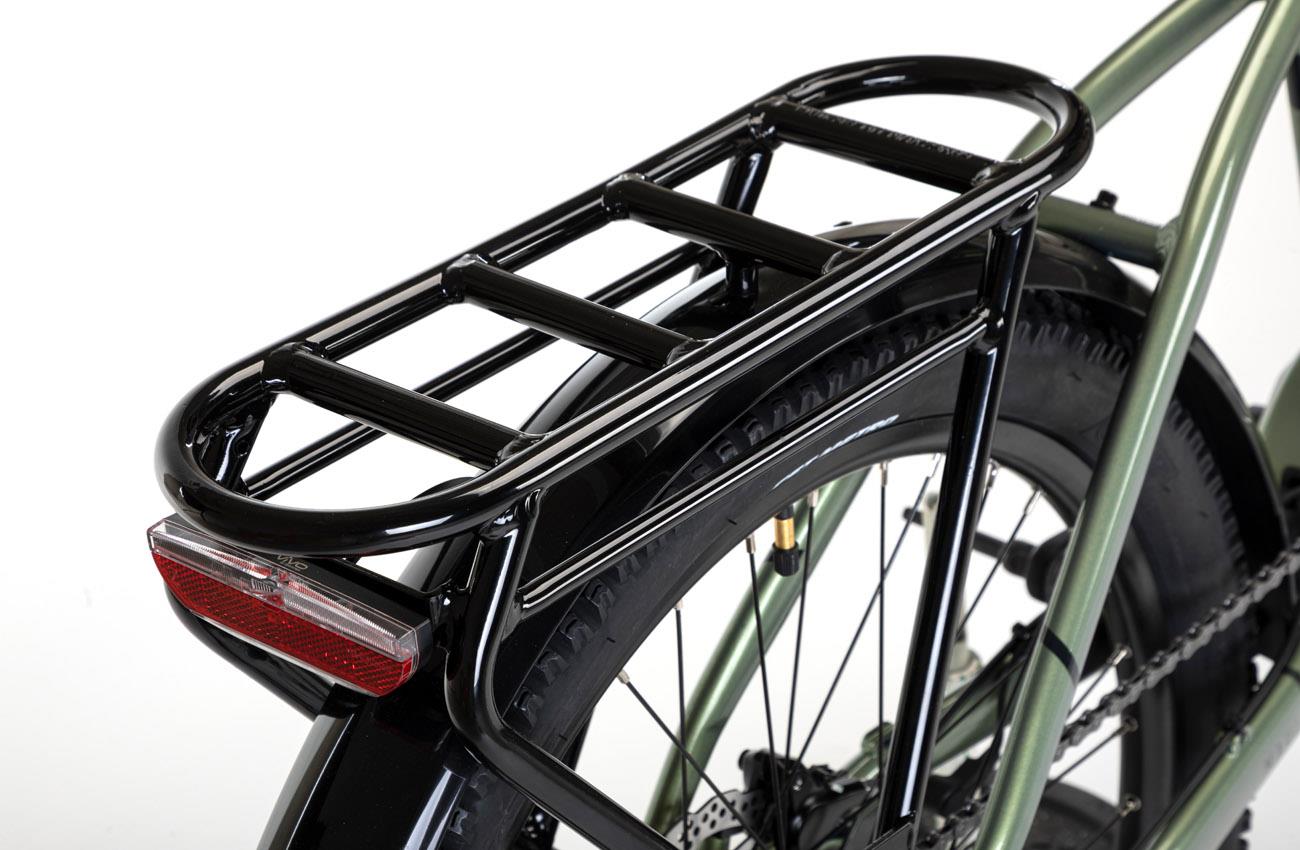 Equipada com descanso, porta-bagagem, luzes e guarda-lamas, é perfeita para as tuas deslocações na cidade ou em caminhos de campo não asfaltados.