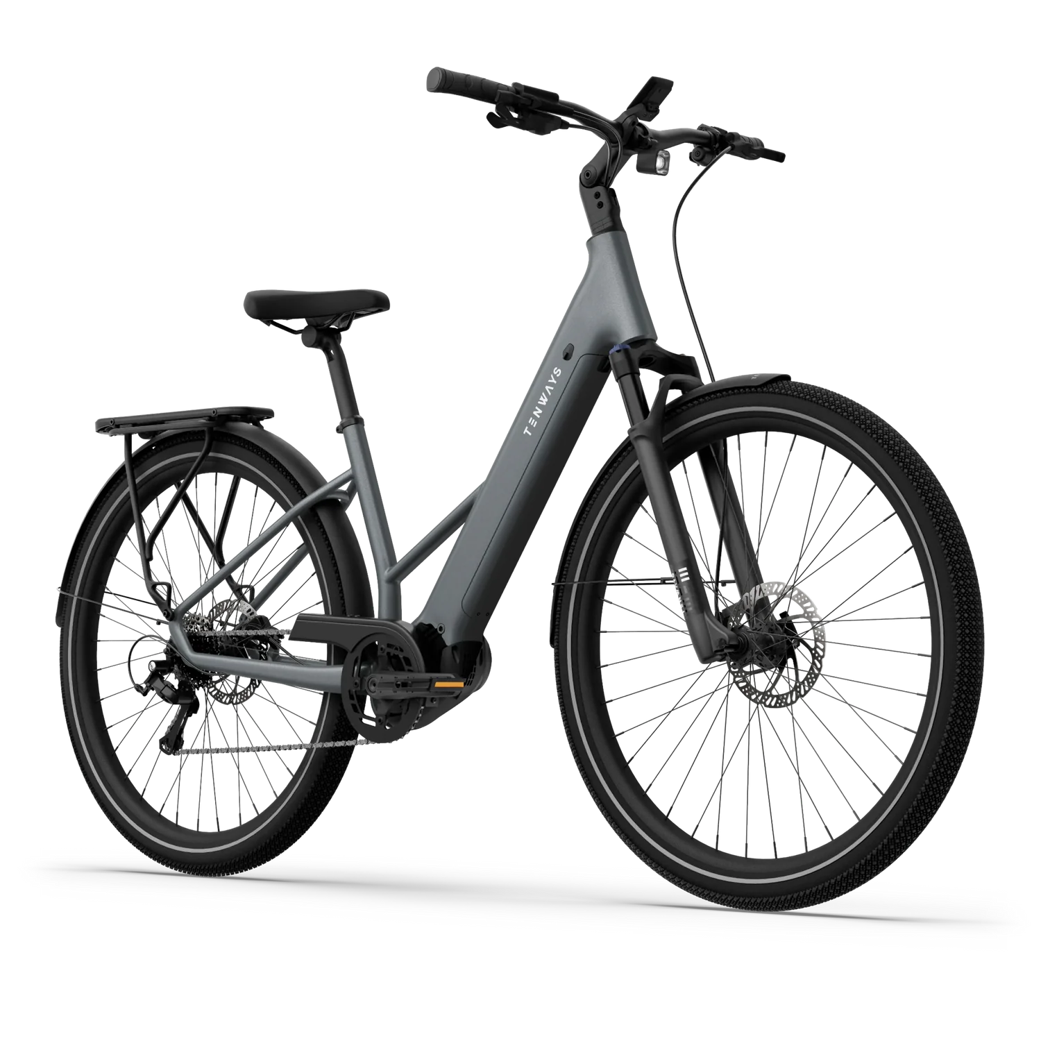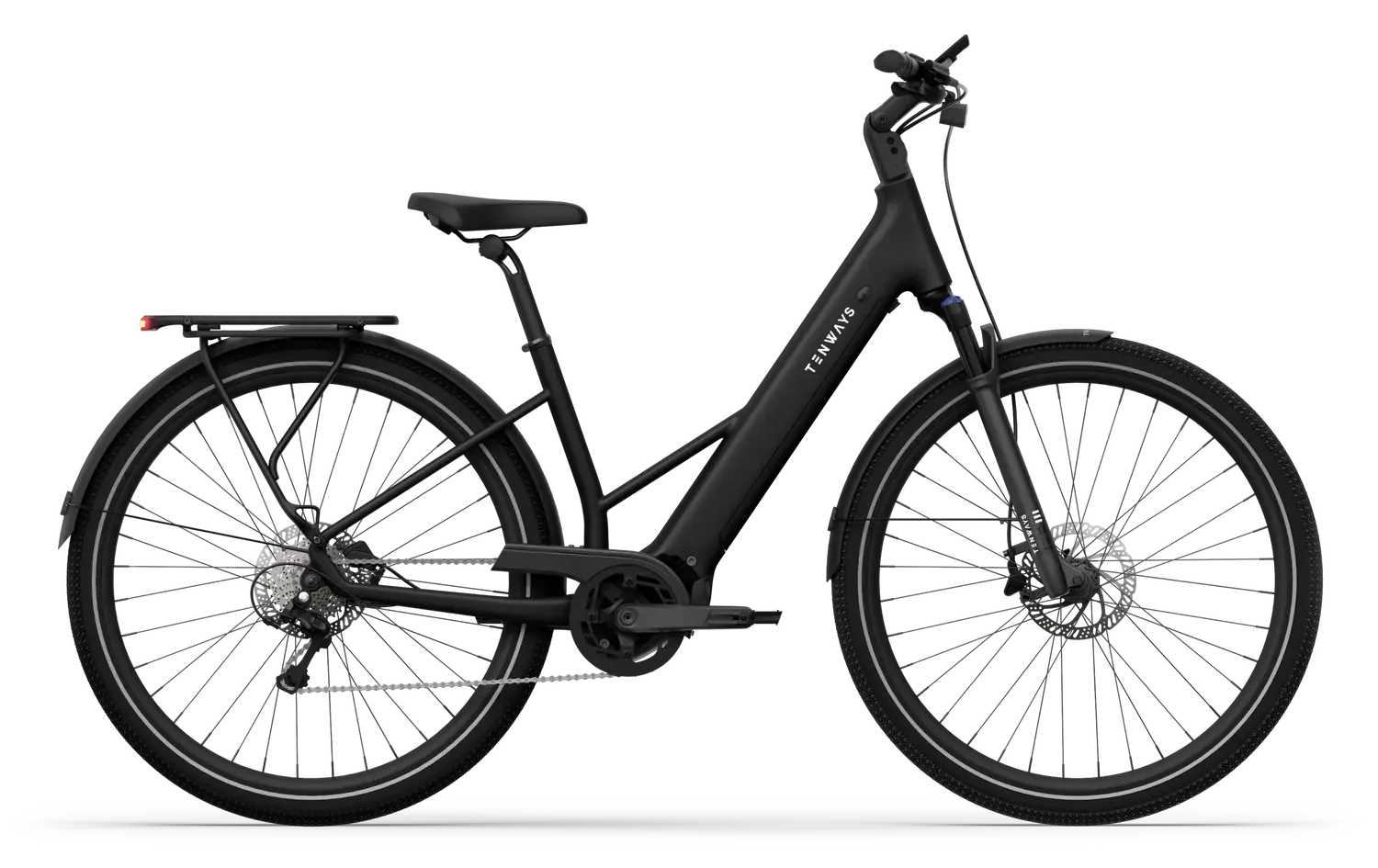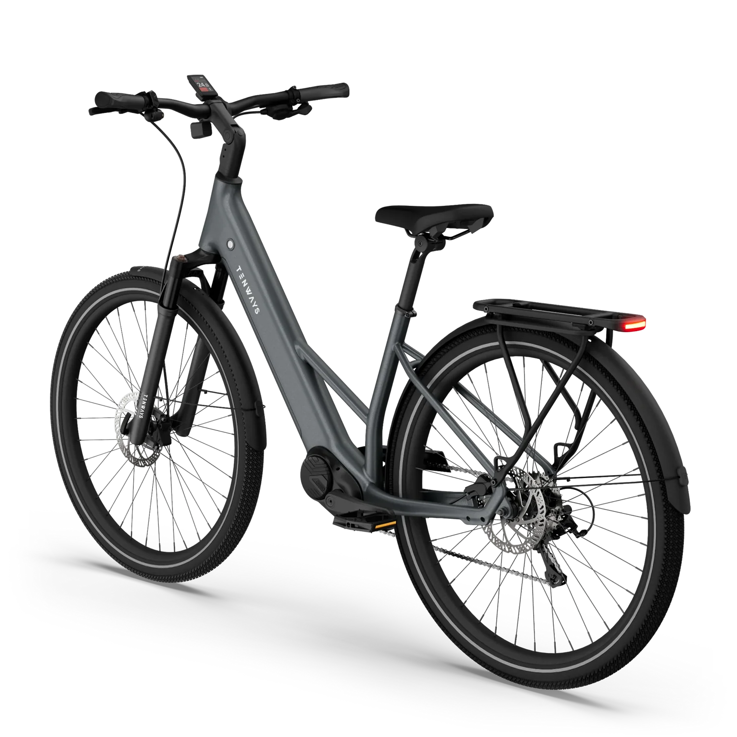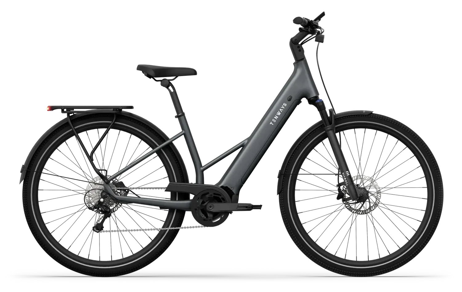 A Tenways AGO AIR é uma e-bike de trekking elegante, com motor central de 80 Nm para subidas exigentes, bateria de 560 Wh para percursos longos e porta-bagagens traseiro MIK para transporte de equipamento. Concebida para versatilidade, adapta-se a asfalto, calçada e trilhos — ideal para deslocações diárias, touring e passeios de lazer.