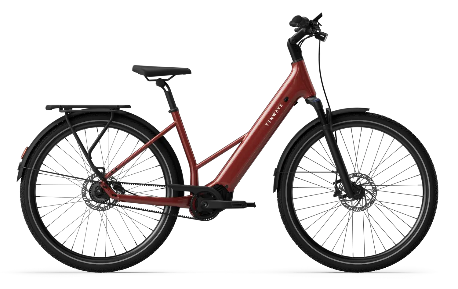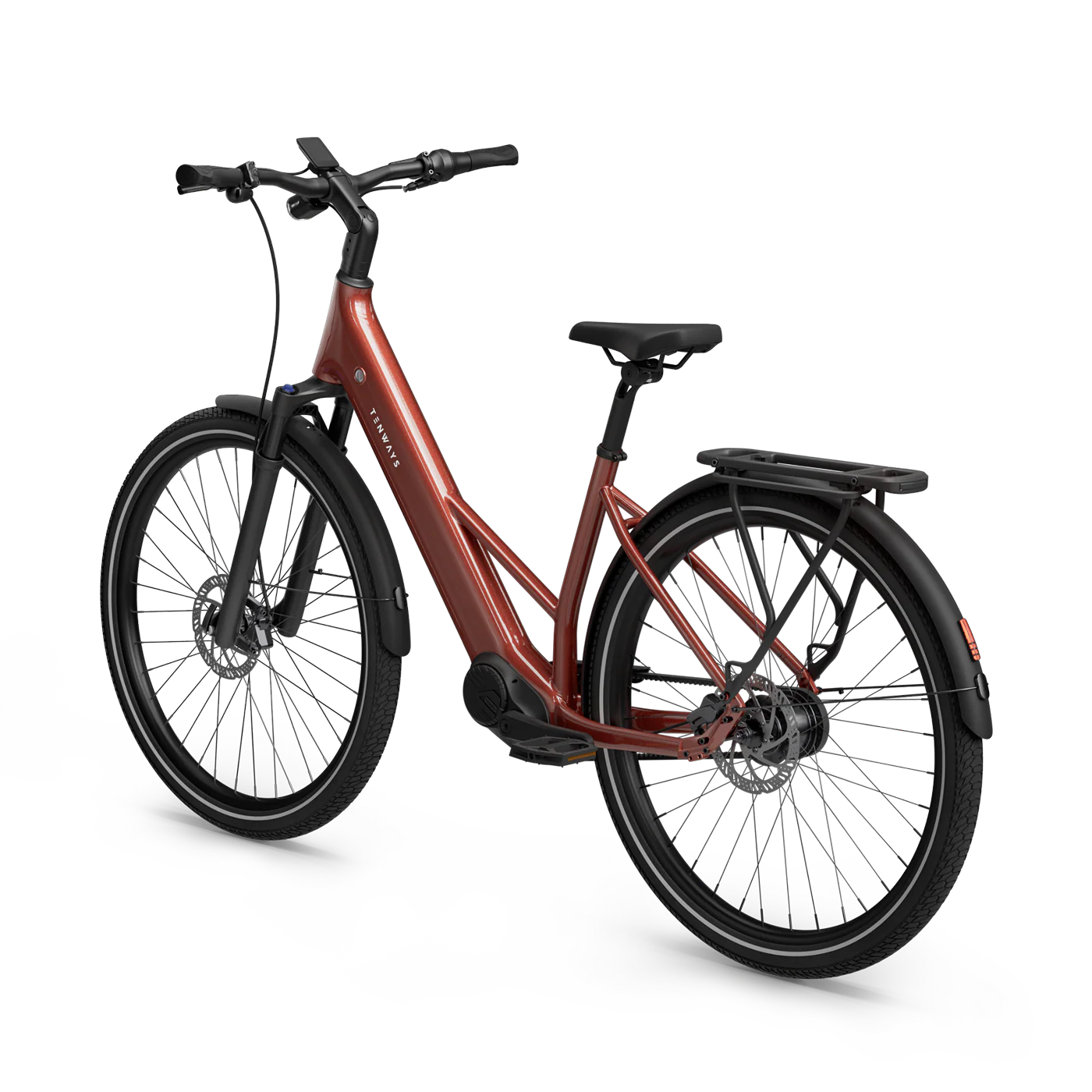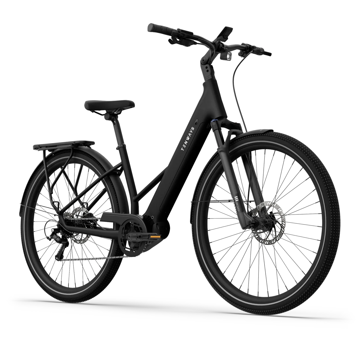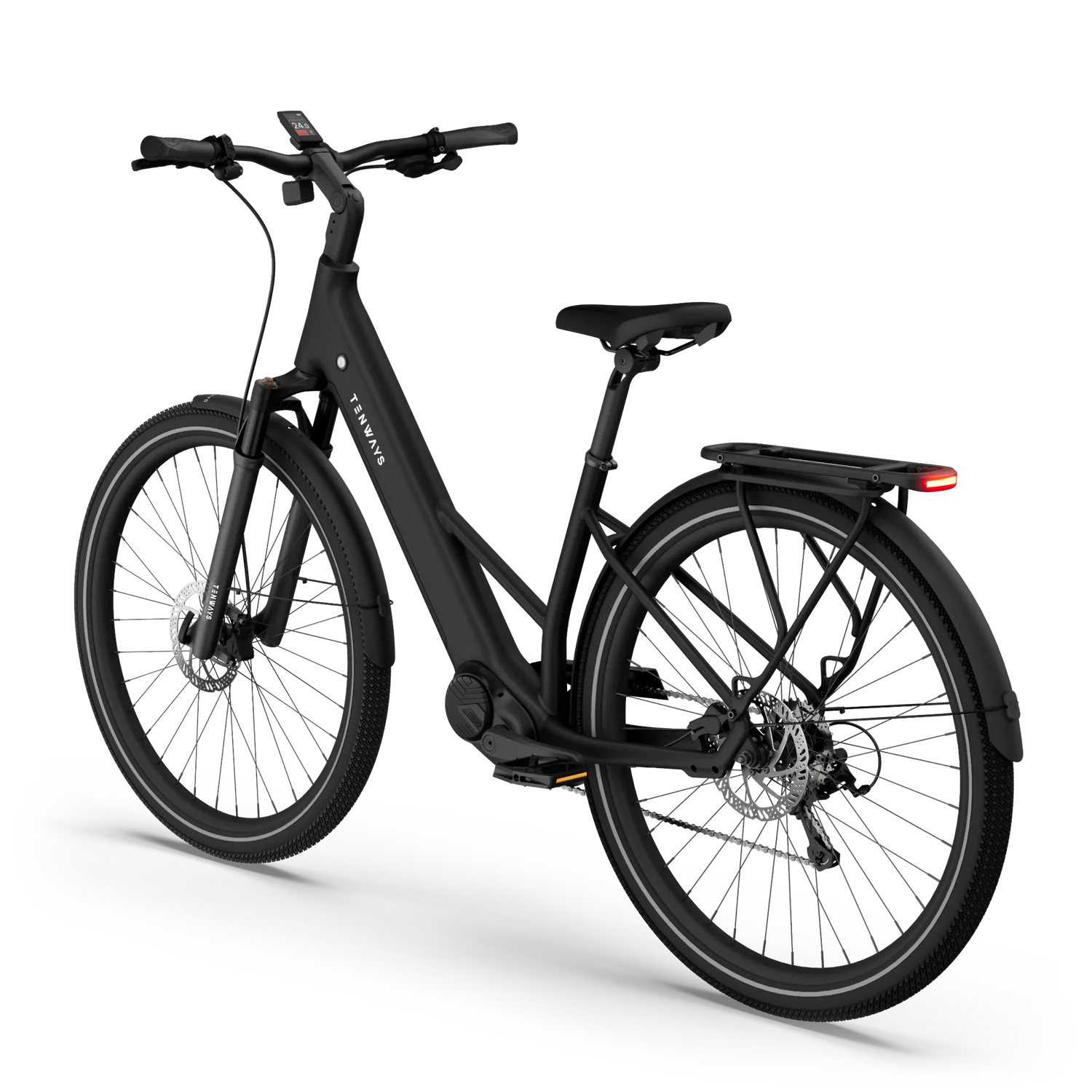 A Tenways AGO AIR é uma e-bike de trekking elegante, com motor central de 80 Nm para subidas exigentes, bateria de 560 Wh para percursos longos e porta-bagagens traseiro MIK para transporte de equipamento. Concebida para versatilidade, adapta-se a asfalto, calçada e trilhos — ideal para deslocações diárias, touring e passeios de lazer.