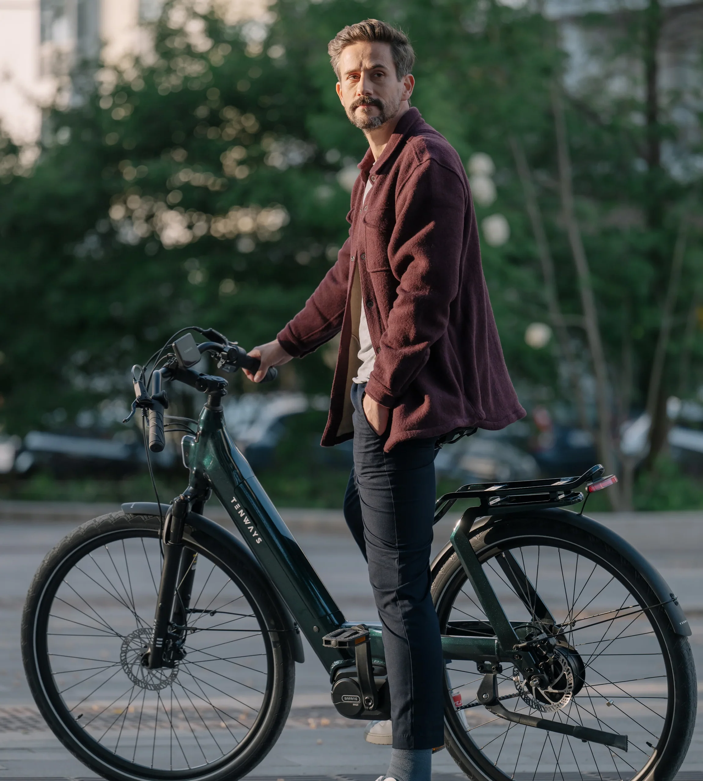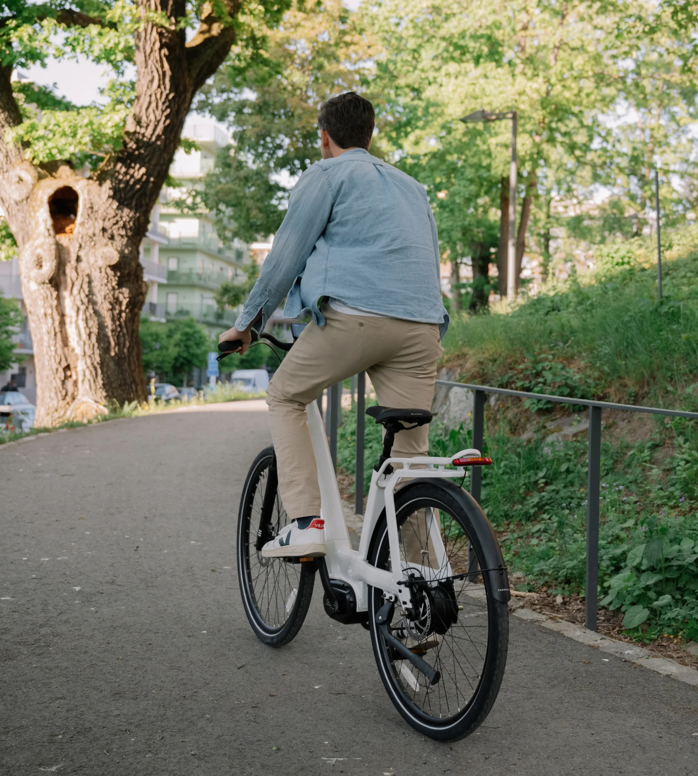Equipada com motor de 80 Nm, correia Gates Carbon CDX e cubo de velocidades Enviolo, esta bicicleta elétrica enfrenta subidas, calçada e ruas urbanas com facilidade.