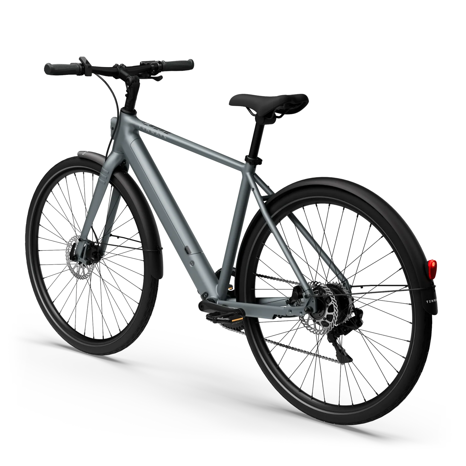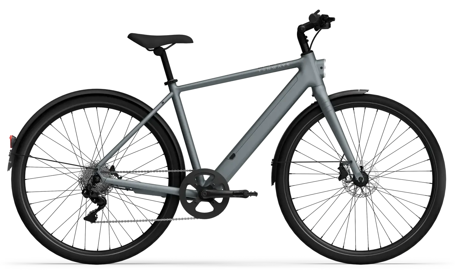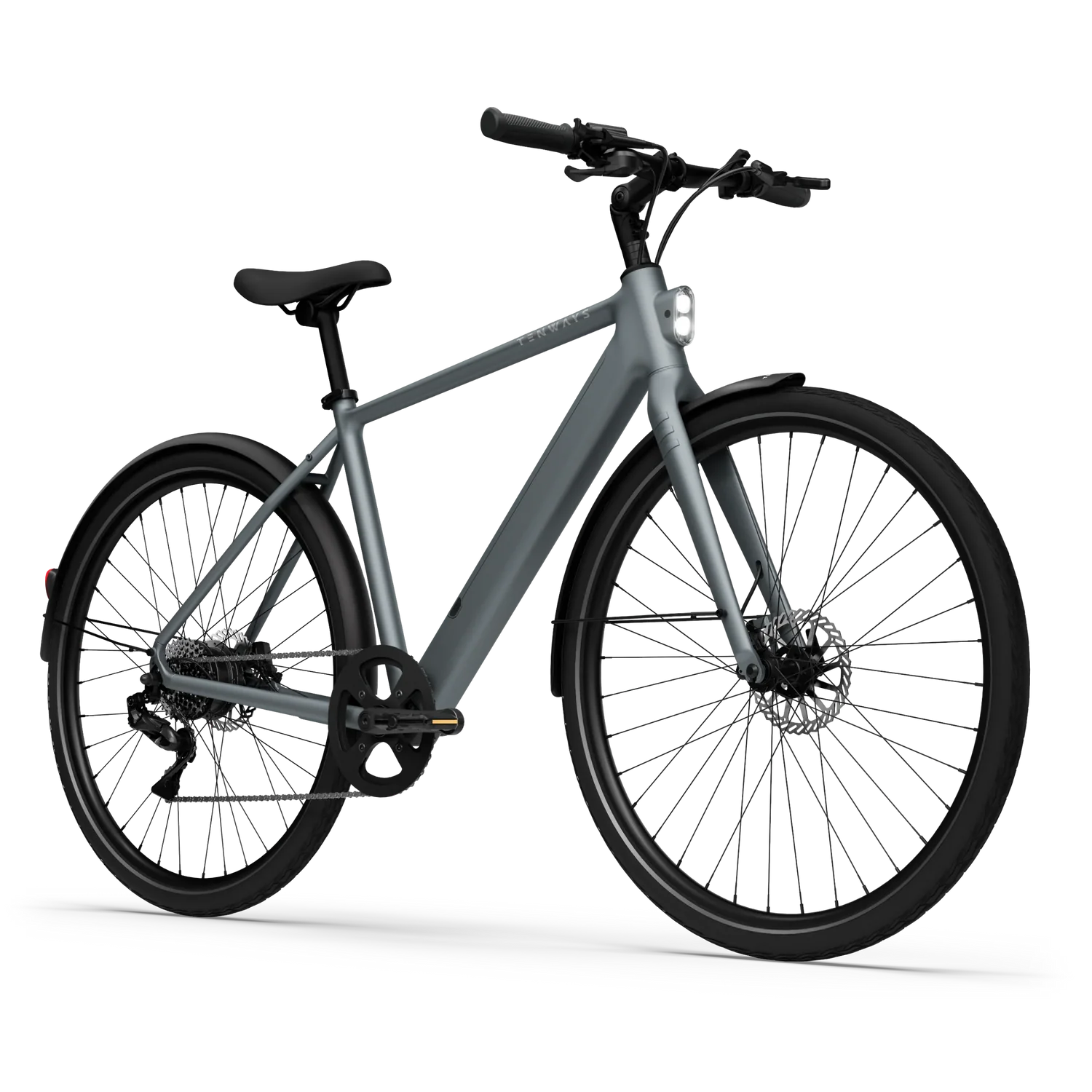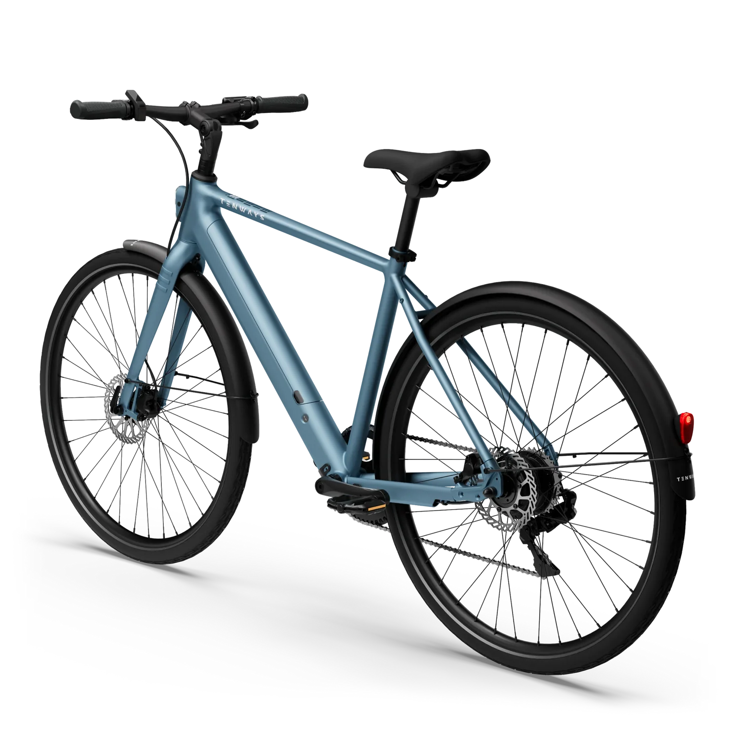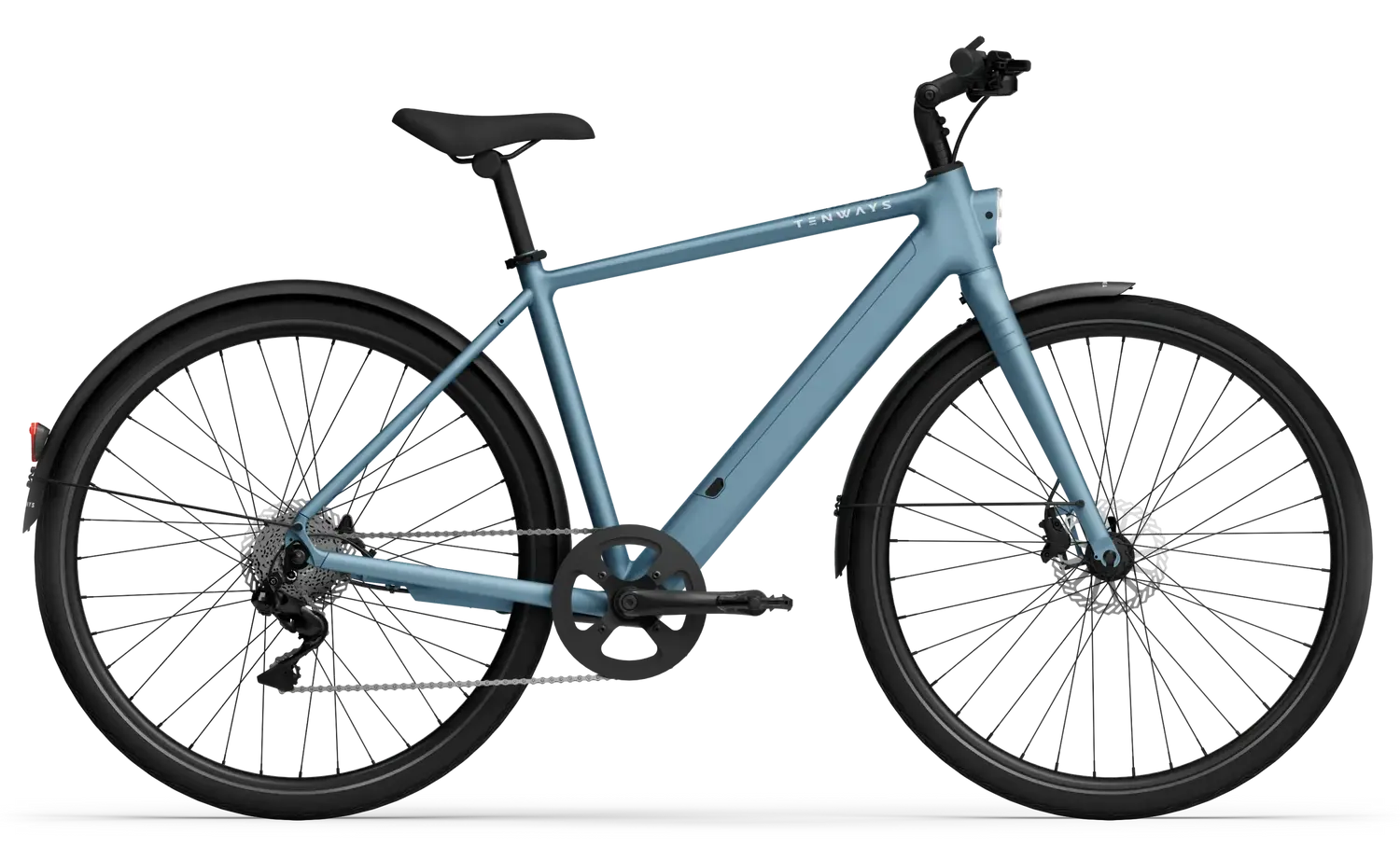 TENWAYS C9 Hub (250 W de potência, 45 Nm de binário máximo). Sensor de binário. Autonomia até 100 km (a autonomia real varia consoante a temperatura, as condições da estrada, o peso do utilizador, etc.). Adequado para inclinações urbanas moderadas.