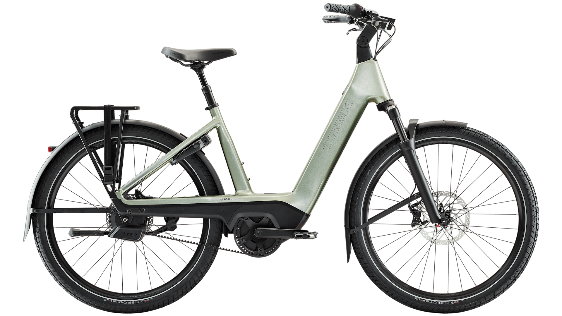 A Trek Charter+ 5 Auto Lowstep é uma e-bike urbana intuitiva e adaptável preparada para deslocações urbanas e passeios de fim de semana. O seu cockpit ajustável permite personalizar a posição desde uma mais vertical e confortável até uma mais ativa, enquanto a suspensão dianteira a ar com 80mm suaviza os impactos. Vem equipada com um cubo de mudanças automáticas internas Enviolo com correia de transmissão Gates CDX para uma condução intuitiva e com baixa manutenção. O motor Bosch Performance Line PX com uma enorme bateria de 800Wh permite-te explorar os locais mais remotos e ainda ficares com potência para regressar a casa, enquanto a opção de 540Wh oferece a potência que necessitas para deslocações urbanas e aventuras de fim de semana.