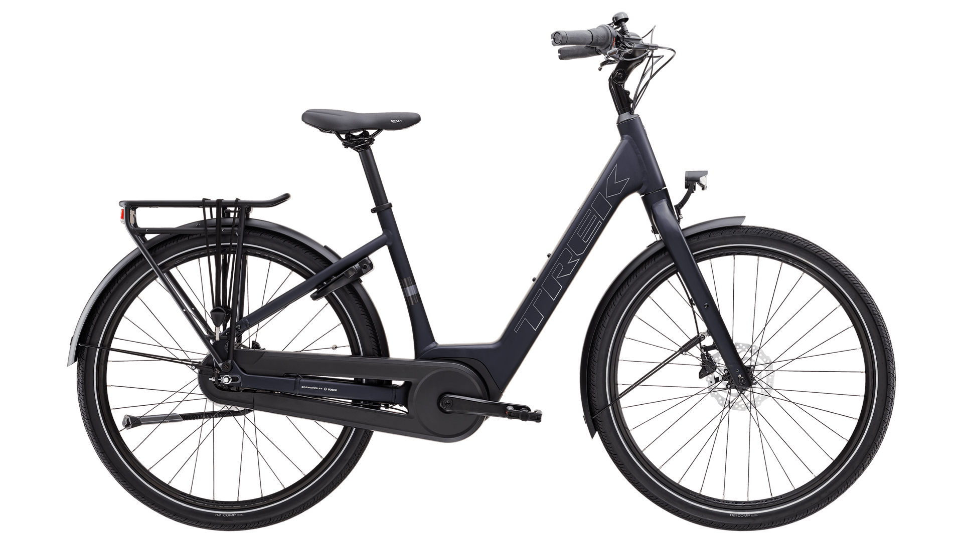 A Trek District+ 1 Lowstep é uma bicicleta elétrica de confiança concebida para fazer com que as voltas pela cidade sejam super divertidas e fáceis. Dispõe de mudanças internas de baixa manutenção, de um fiável sistema e-bike Bosch, de um quadro lowstep que facilita o montar e desmontar da bicicleta e de travões de disco hidráulicos para uma elevada potência de travagem sob quaisquer condições climatéricas. Além disso, vem equipada com todas as funcionalidades utilitárias necessárias para as voltas diárias de bicicleta, como guarda-lamas, luzes e porta-bagagens traseiro.
