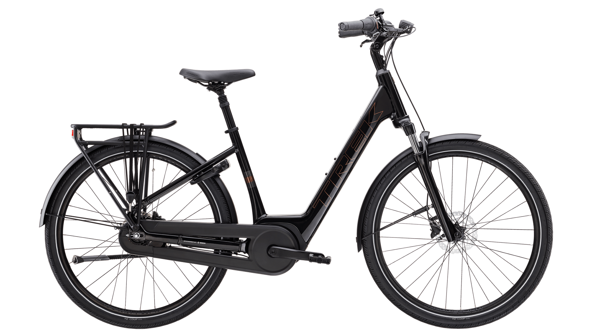 A Trek District+ 2 Lowstep é uma bicicleta elétrica confortável e fiável que faz com que pedalar pela cidade seja simples, rápido e divertido. Inclui mudanças internas de manutenção reduzida, um potente motor Bosch Active Line Plus e travões de disco hidráulicos para uma maior potência de travagem. Além disso, vem equipada com um sistema de suspensão suavizador da estrada, com um quadro lowstep para facilitar o montar e desmontar da bicicleta e com todas as funcionalidades utilitárias necessárias, como guarda-lamas, Luzes de Circulação Diurna e um porta-bagagens traseiro.