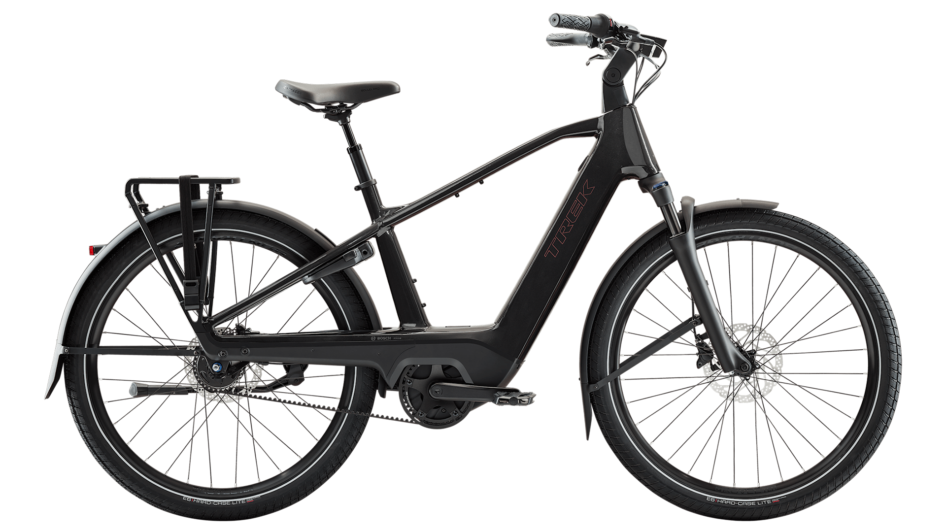 A Trek Charter+ 4 Nexus 5 Belt Lowstep é uma bicicleta elétrica urbana com baixa manutenção e fácil de utilizar para deslocações na cidade, passeios e para as compras do dia-a-dia. O seu cockpit ajustável deixa-te personalizar o ajuste para uma posição mais vertical que privilegia o conforto ou para uma posição mais ativa com maior eficiência de pedalada. Vem pronta a pedalar com um cubo de mudanças internas Shimano Nexus de 5 velocidades específico para e-bikes, combinado com uma duradoura e silenciosa correia Gates CDC, além do motor Bosch Performance Line com a opção de bateria entre 540Wh ou 800Wh para as tuas maiores aventuras. Fica completa com a suspensão dianteira de mola helicoidal SR Suntour de 63mm para suavizar os impactos nas estradas mais difíceis.