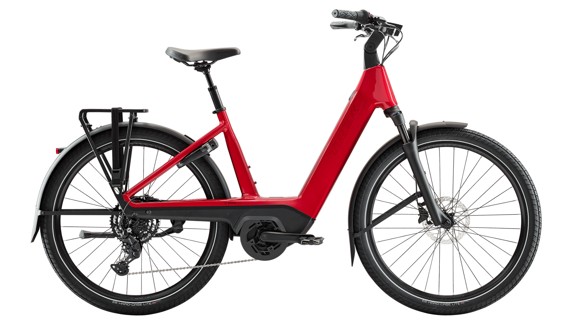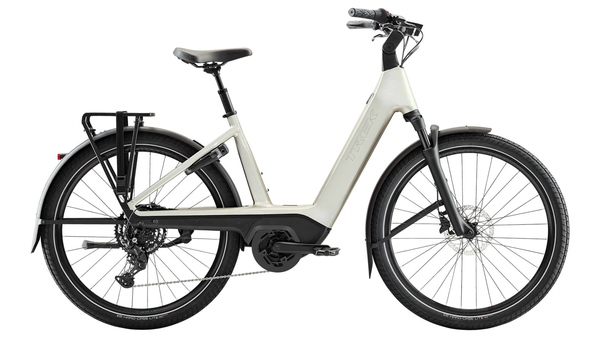 A Trek Charter+ 4 Lowstep é uma e-bike urbana preparada para tudo. O seu cockpit ajustável deixa-te personalizar o ajuste para uma posição mais vertical que privilegia o conforto ou para uma posição mais ativa com maior eficiência de pedalada. Vem com um quadro premium Alpha Platinum com geometria lowstep que oferece confiança, suspensão dianteira de mola helicoidal, transmissão Shimano CUES de 9 velocidades e um motor Bosch Performance Line com a opção de bateria entre 540Wh para conferir um impulso consistente nas deslocações urbanas e nos passeios, ou 800Wh para as tuas maiores aventuras.