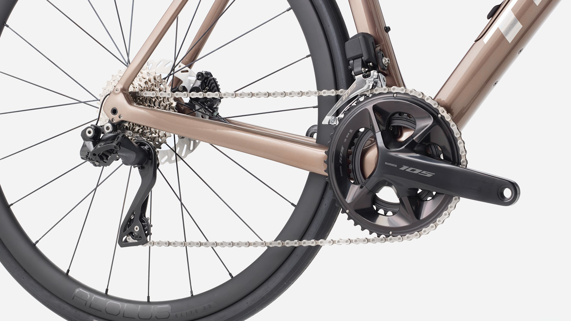 Espaço versátil para pneus – Vem equipada com pneus de 32 mm com baixa resistência ao rolamento, mas oferece espaço para pneus até 38 mm para que enfrentes com confiança desde pavimentos suaves até trilhos de gravel ligeiros.