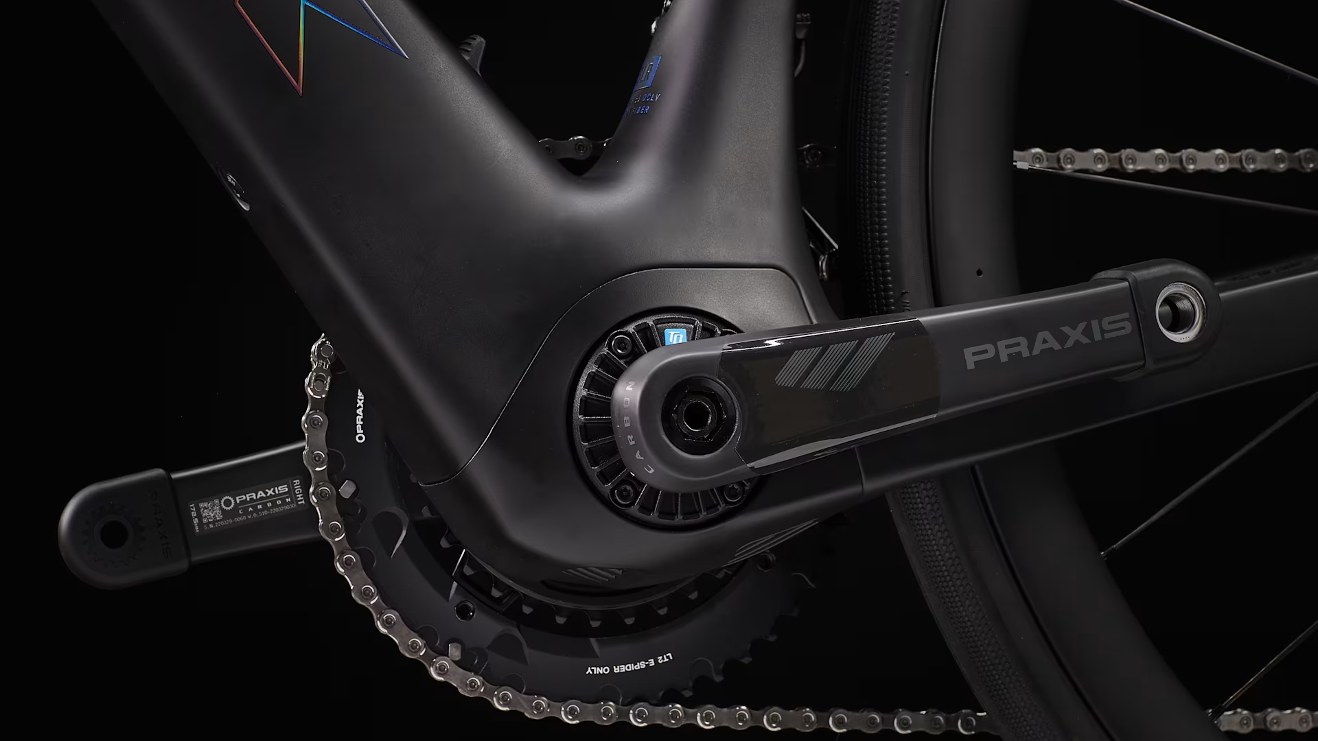 Um incrivelmente leve quadro em Carbono OCLV 800 Series com IsoSpeed traseiro. Um potente motor TQ harmonic pin ring de 50 Nm que fornece assistência até 25 km/h, uma bateria integrada de 360 Wh, um monitor inteligente LED integrado e os comandos discretos montados nas manetes para navegar entre os modos de assistência. Rodas Aeolus Pro 37V em Carbono OCLV, transmissão eletrónica sem fios Shimano 105 2×12 Di2, pedaleiro em carbono, um guiador Bontrager Pro Iso-Core que absorve as vibrações e um avanço RCS Pro que integra totalmente os cabos para conferir um aspeto elegante.