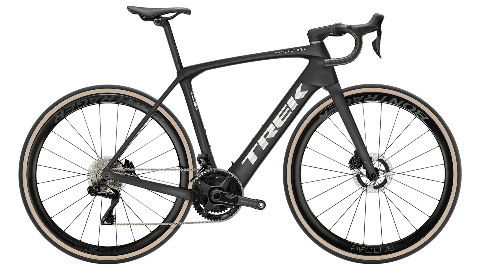 Domane+ em carbono, coluna de direção cónica em carbono, ponto de fixação para guarda-lamas, travões de disco flat mount, eixo passante 12x100mm.
