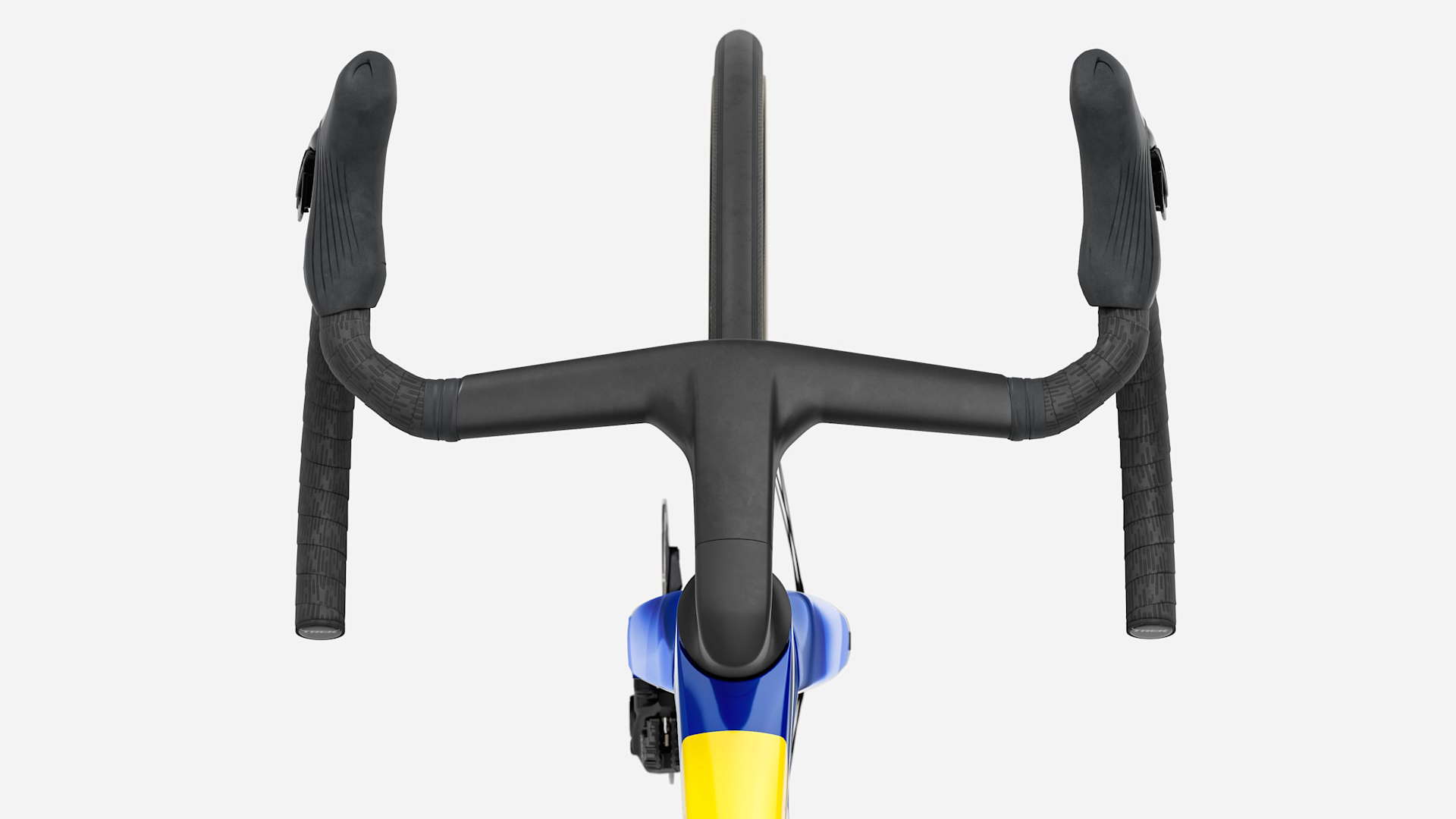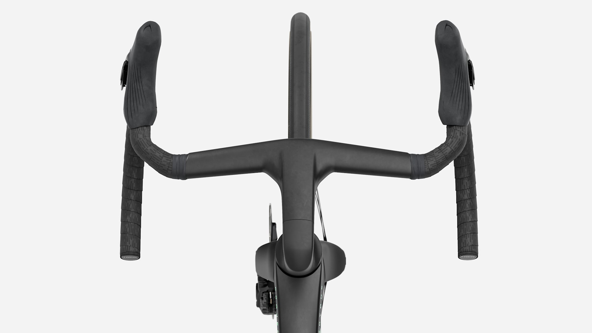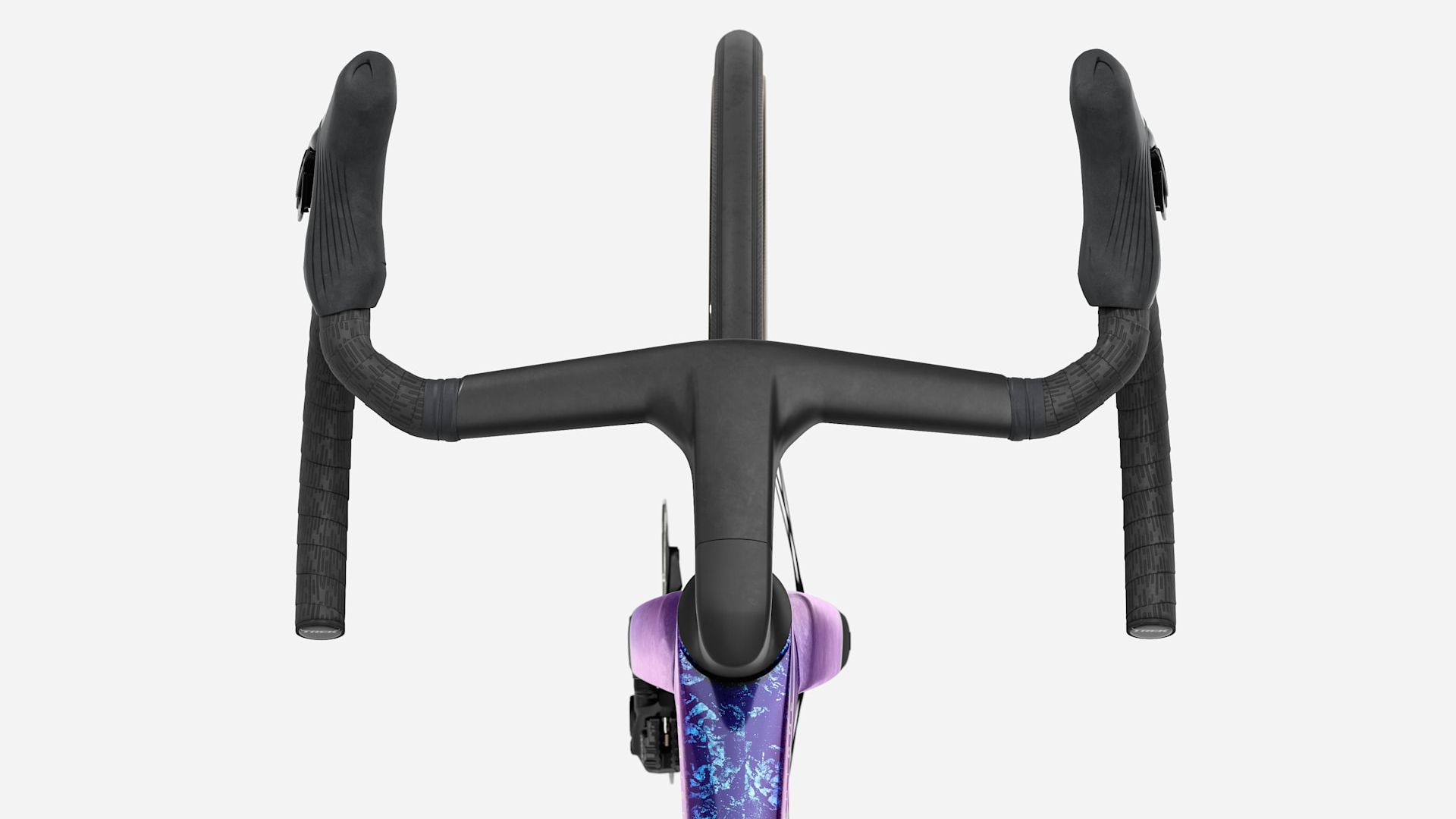 Guiador/avanço de peça única Aero RSL – O novo guiador/avanço de peça única é mais leve, mais aerodinâmico e mais ergonómico do que a versão anterior. Além disso, o guiador mais estreito 3 cm na zona das manetes do que os drops permite que ajustes a tua posição de condução para estar mais orientada para a aerodinâmica (nas manetes) ou para a potência (nos drops).