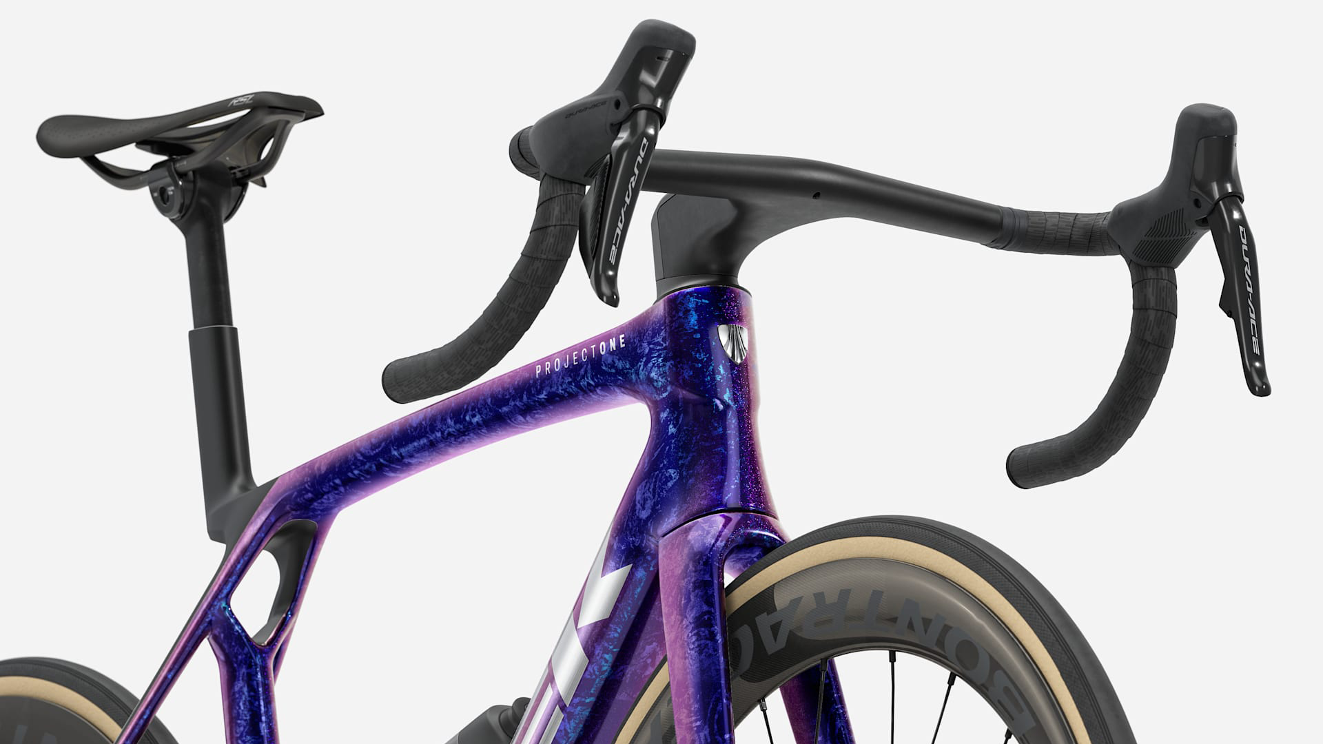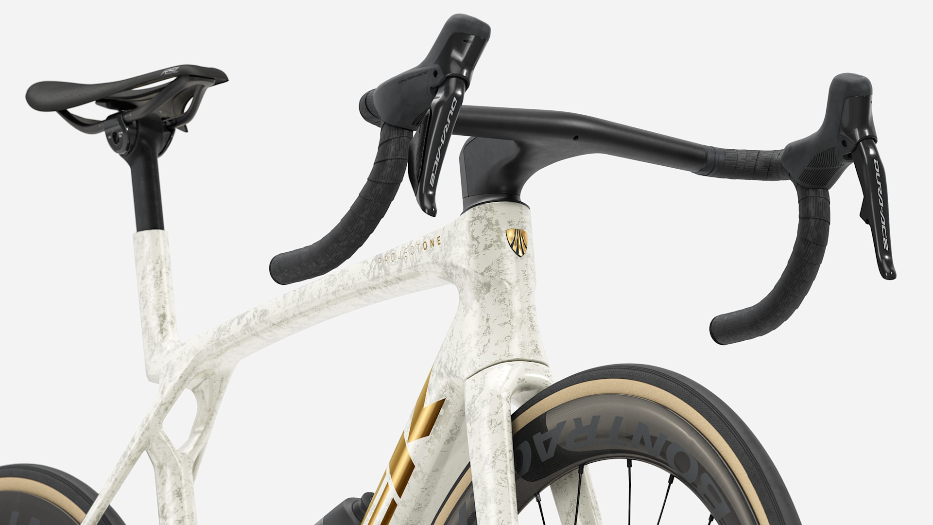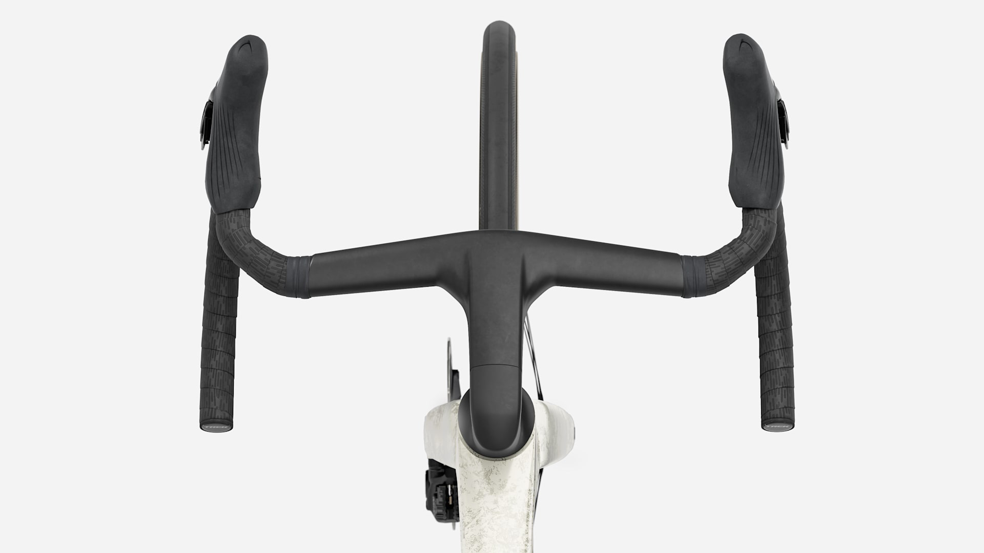 Guiador/avanço de peça única Aero RSL – O novo guiador/avanço de peça única é mais leve, mais aerodinâmico e mais ergonómico do que a versão anterior. Além disso, o guiador mais estreito 3 cm na zona das manetes do que os drops permite que ajustes a tua posição de condução para estar mais orientada para a aerodinâmica (nas manetes) ou para a potência (nos drops).