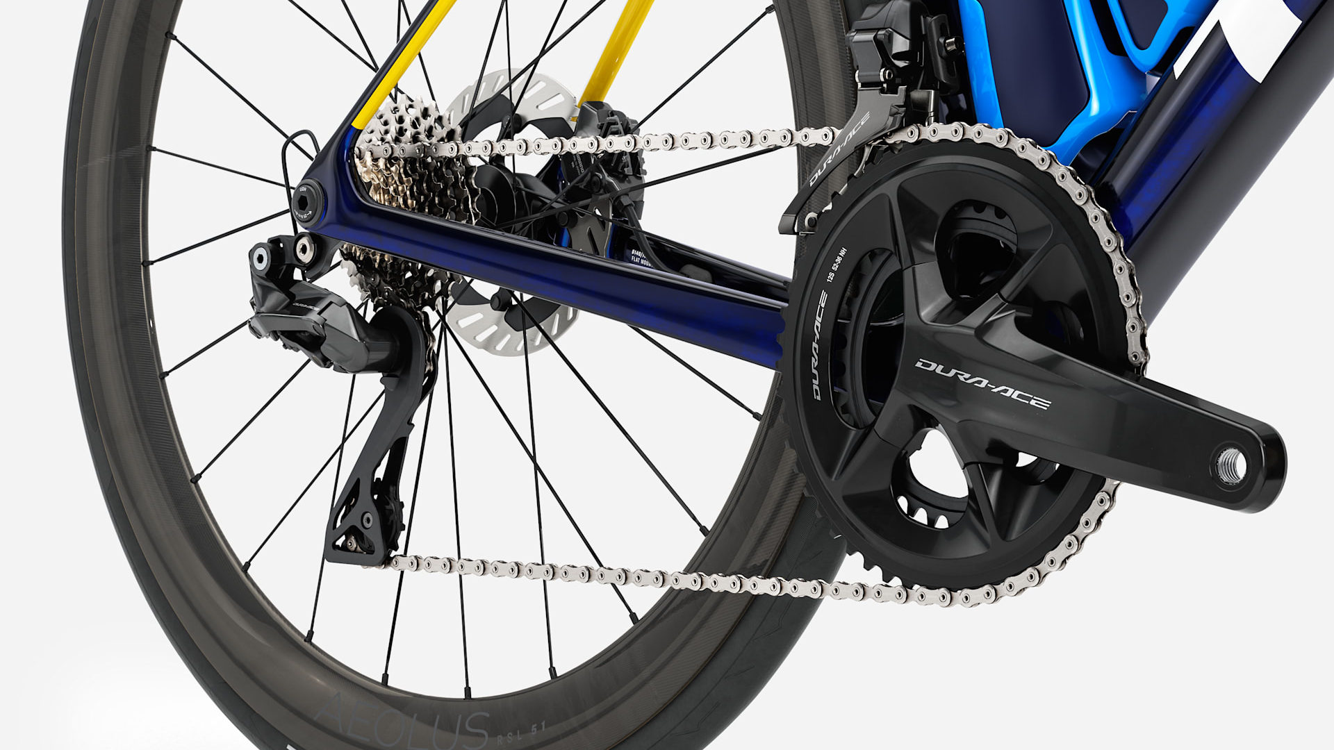 A Trek Madone SLR 9 Gen 8 foi concebida para dominar as estradas com a vantagem de baixo peso e velocidade aerodinâmica. É feita com o nosso carbono topo de gama OCLV 900 Series que não só é incrivelmente leve, como dispõe de formatos aerodinâmicos para dominar as descidas e as estradas em plano. Esta bicicleta está preparada de raiz para ganhar com a transmissão topo de gama sem fios Shimano Dura-Ace Di2, com rodas em carbono Bontrager Aeolus RSL 51, guiador/avanço integrado Trek Aero RSL e bidões e porta-bidões RSL Aero para reduzir ainda mais o atrito.