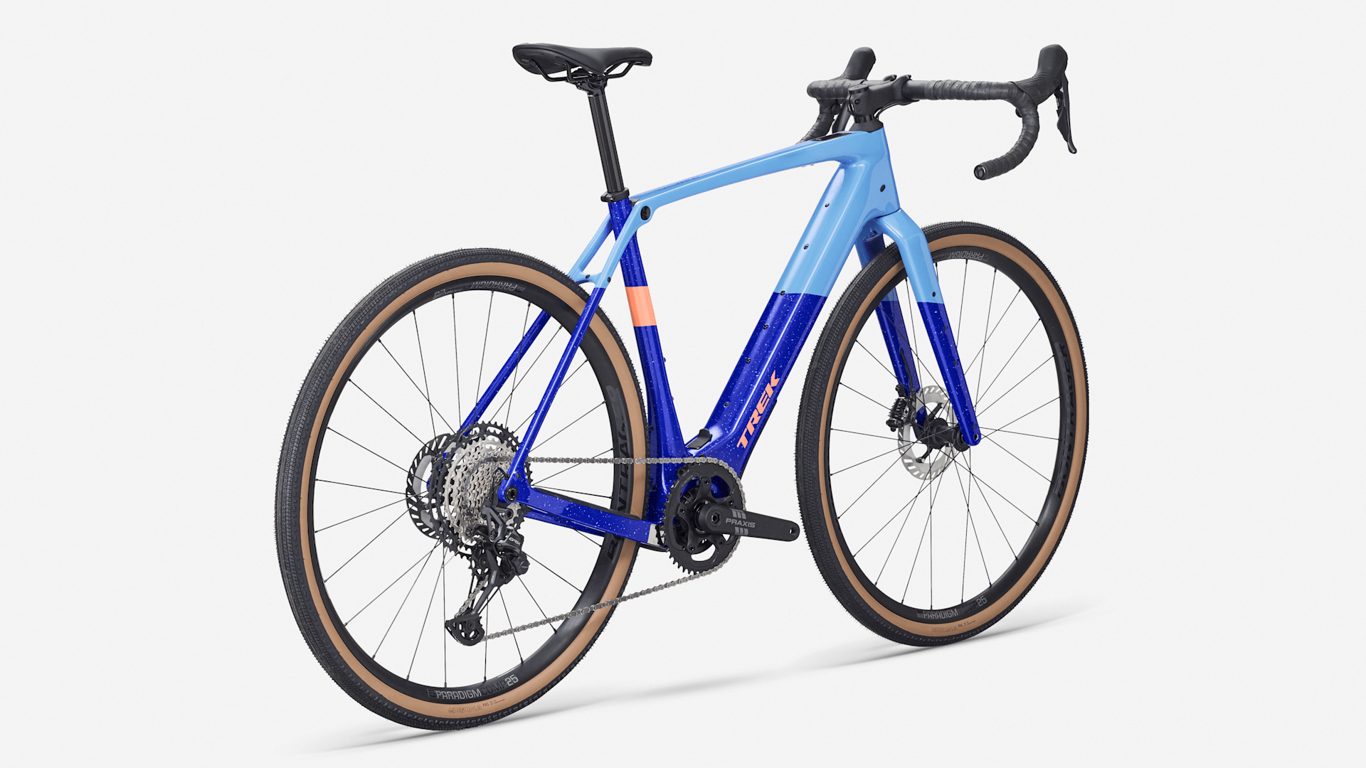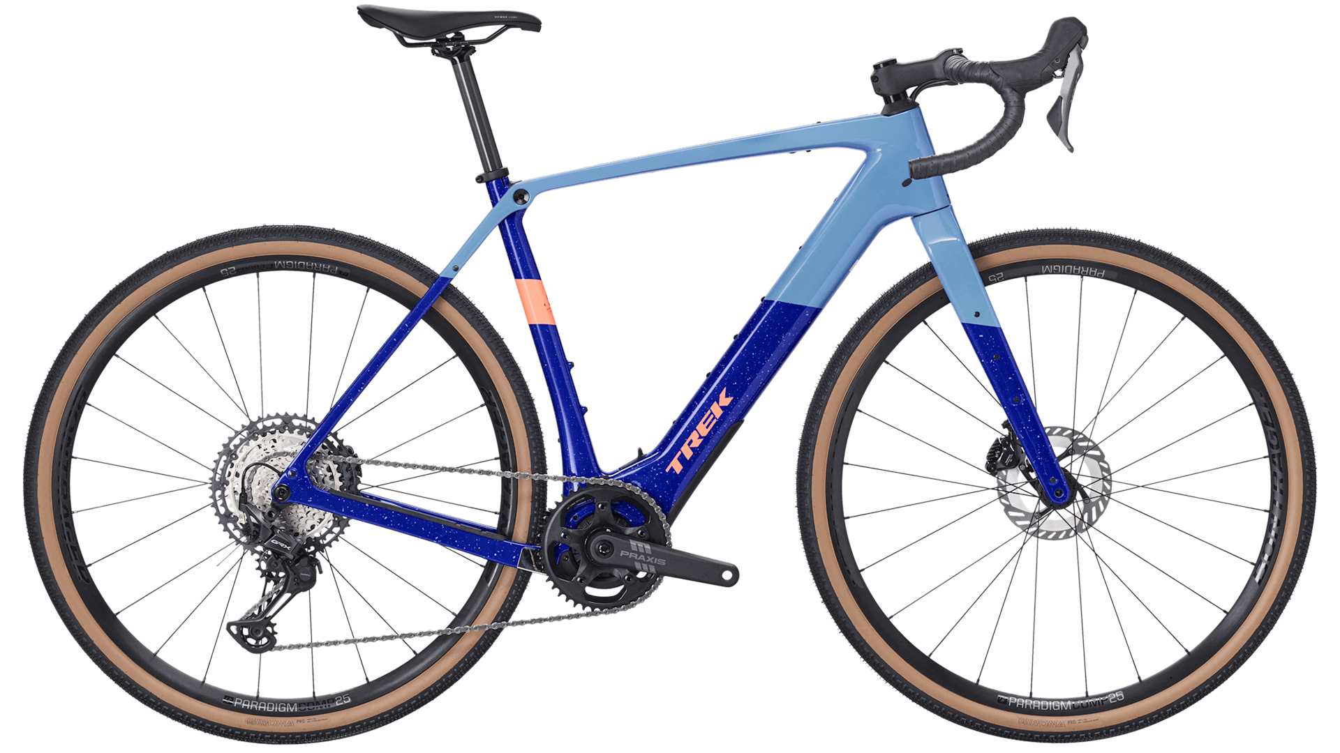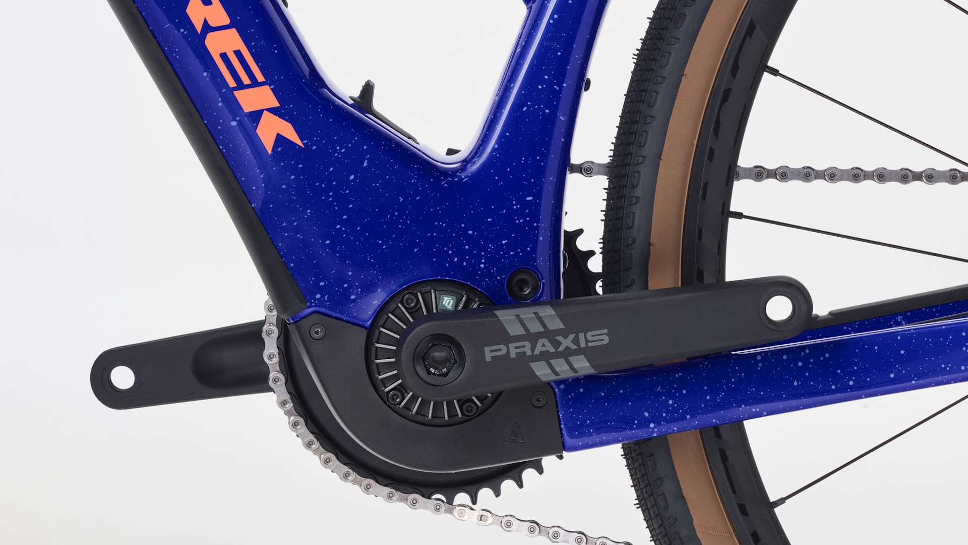 A Trek Checkpoint+ SL 5 é uma bicicleta elétrica de gravel para grandes distâncias. Vem equipada com um motor TQ HPR60 que oferece um impulso suave e silencioso e com uma bateria de 360 Wh que permite fazer mais quilómetros. Vem pronta a pedalar com um quadro em Carbono OCLV, rodas duráveis em alumínio, transmissão Shimano GRX 1x de 12 velocidades e geometria de resistência que te mantém confortável nas longas distâncias.