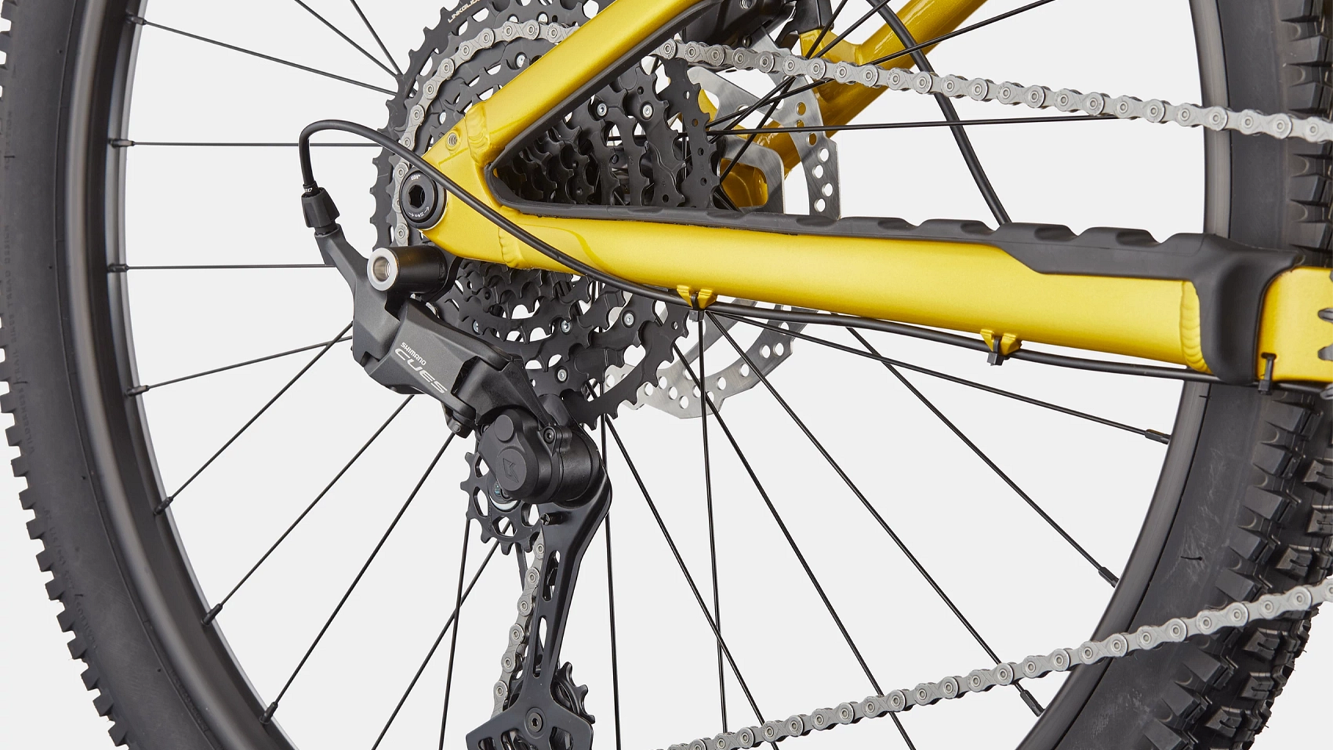 • Transmissão Shimano CUES U6000 de 1×10 velocidades com ampla gama