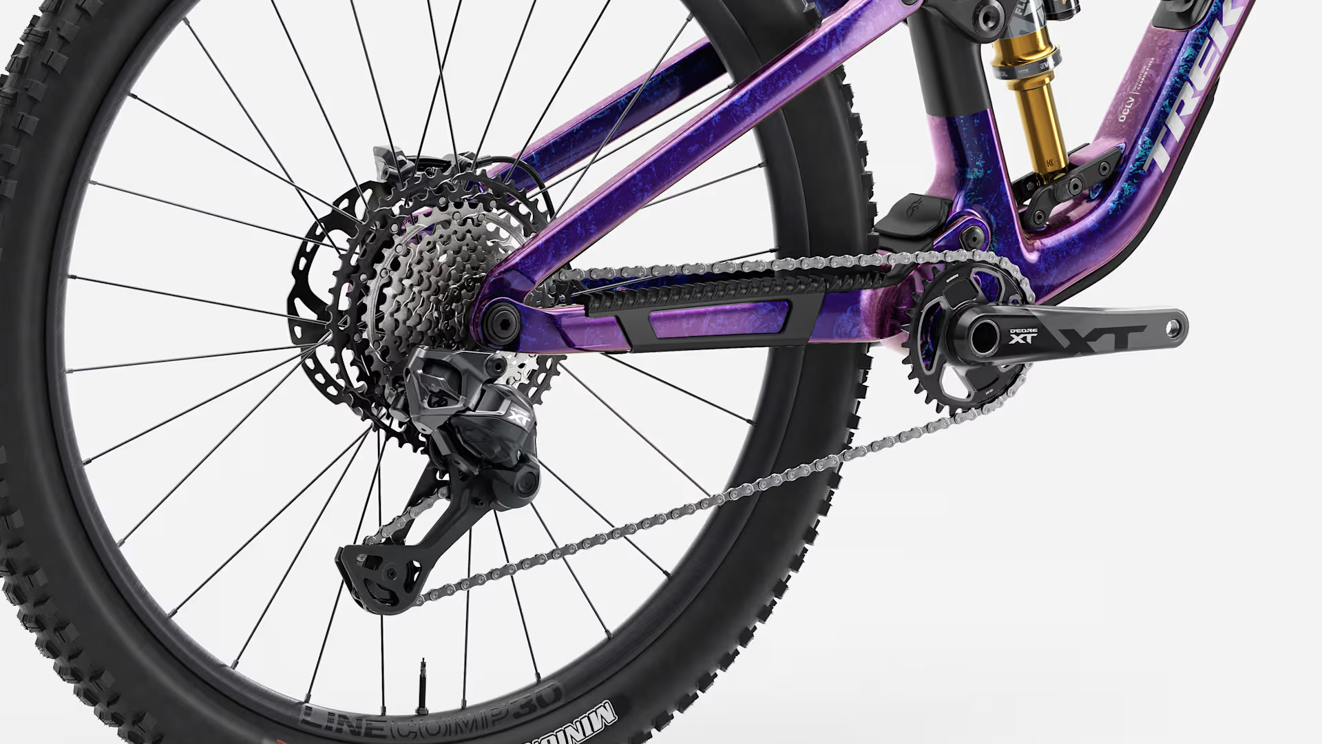 Bontrager Line Comp 30, Tubeless Ready, 6 parafusos (F) Boost110, eixo passante Bontrager Switch, manete removível de 15mm, 29” / (T) Rapid Drive 108, cepo Shimano MicroSpline, Boost148, eixo passante Bontrager Switch, manete removível de 12mm, 29". Pneus (F) Maxxis Minion DHF, tubeless ready, 3C, revestimento EXO+, MAXXGRIP, talão flexível, 29x2.5'' / (T) Maxxis Minion DHR II, tubeless ready, 3C, revestimento EXO+, MAXXTERRA, talão flexível, 29x2.5''.