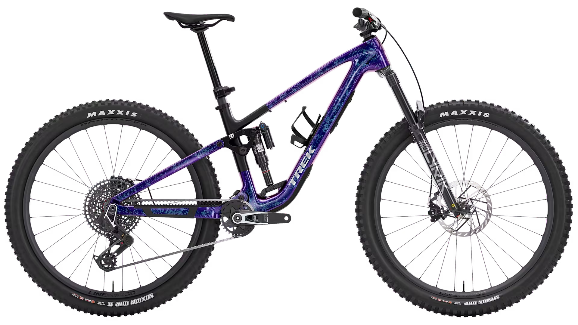 A Trek Fuel EX 9.9 X0 AXS é a bicicleta de trail versátil topo de gama, concebida para enfrentar todos os trilhos e em qualquer altura. O seu quadro em Carbono OCLV Mountain conjuga-se com o amortecedor RockShox Deluxe Ultimate e com a suspensão dianteira Lyrik Ultimate (145 mm, 150 mm) para te oferecer o curso que precisas para pedalar por cima das raízes e saltar entre trajetórias. Vem equipada com a transmissão sem fios X0 Eagle AXS para engrenagem suave das mudanças, enquanto os travões de 4 pistões SRAM Maven Silver oferecem potência de travagem extremamente eficaz. Fica completa com rodas Bontrager Line Pro 30 em Carbono OCLV Mountain e um excelente espigão telescópico sem fios RockShox Reverb AXS.