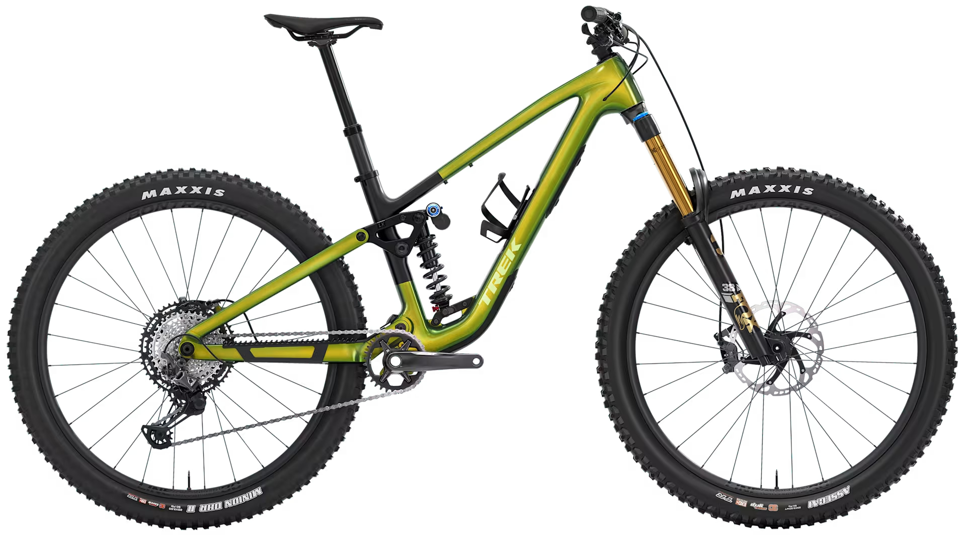 Bontrager Line Comp 30, Tubeless Ready, 6 parafusos (F) Boost110 Eixo passante Bontrager Switch, manete removível de 15 mm, 29” / (T) Rapid Drive 108, cepo Shimano MicroSpline, Boost148, eixo passante de 12 mm, 29". Pneus (F) Maxxis Assegai, tubeless ready, 3C, revestimento EXO+, MAXXGRIP, talão flexível, 29x2.5'' / (T) Maxxis Minion DHR II, tubeless ready, 3C, revestimento EXO+, MAXXTERRA, talão flexível, 29x2.5''.