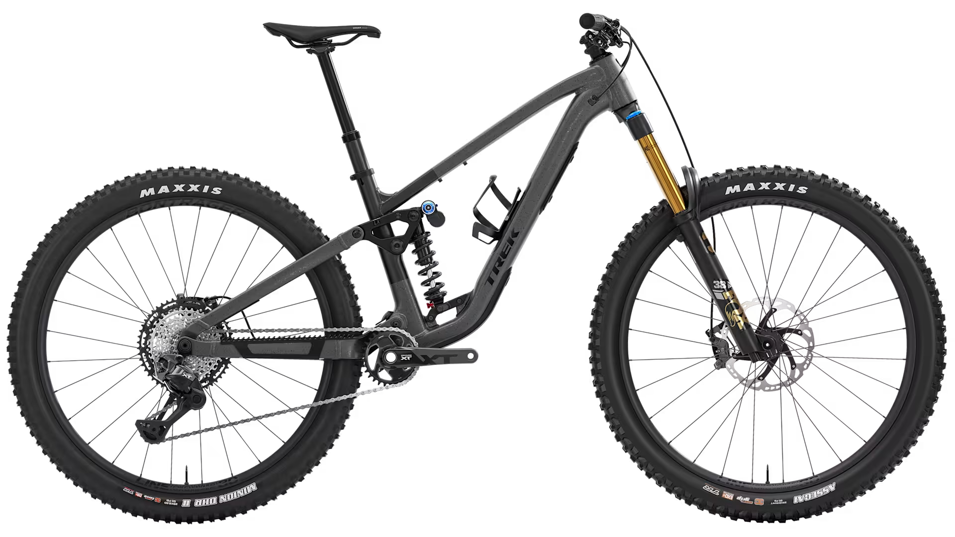Bontrager Line Comp 30, Tubeless Ready, 6 parafusos (F) Boost110 Eixo passante Bontrager Switch, manete removível de 15 mm, 29” / (T) Rapid Drive 108, cepo Shimano MicroSpline, Boost148, eixo passante de 12 mm, 29". Pneus (F) Maxxis Assegai, tubeless ready, 3C, revestimento EXO+, MAXXGRIP, talão flexível, 29x2.5'' / (T) Maxxis Minion DHR II, tubeless ready, 3C, revestimento EXO+, MAXXTERRA, talão flexível, 29x2.5''.