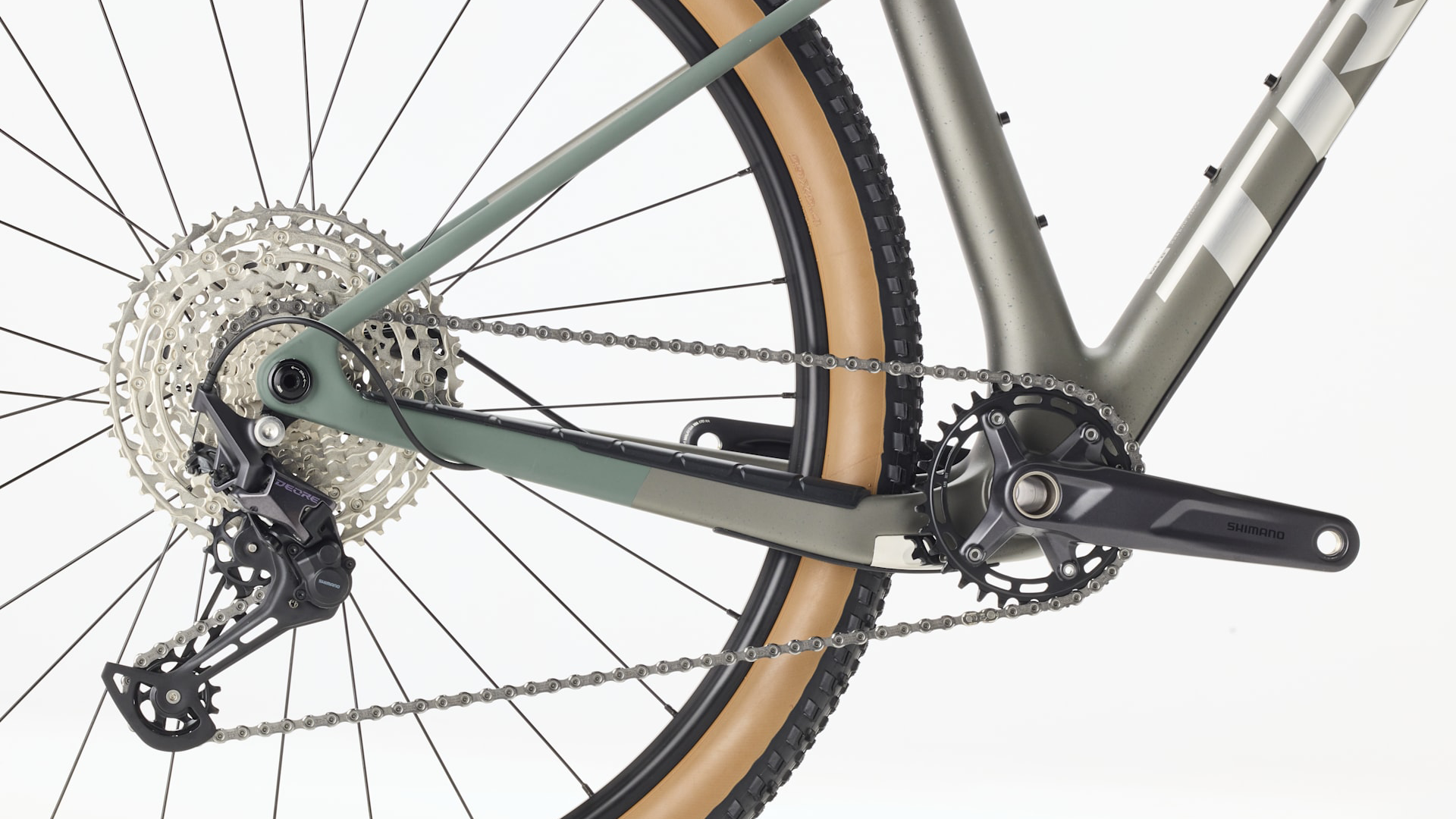 Carbono OCLV para BTT: A fibra de carbono da Trek específica para mountain bikes é mais resistente, com materiais e procedimentos de disposição de camadas exclusivos, a engenharia avançada da Trek e um padrão de testes mais rigoroso.
