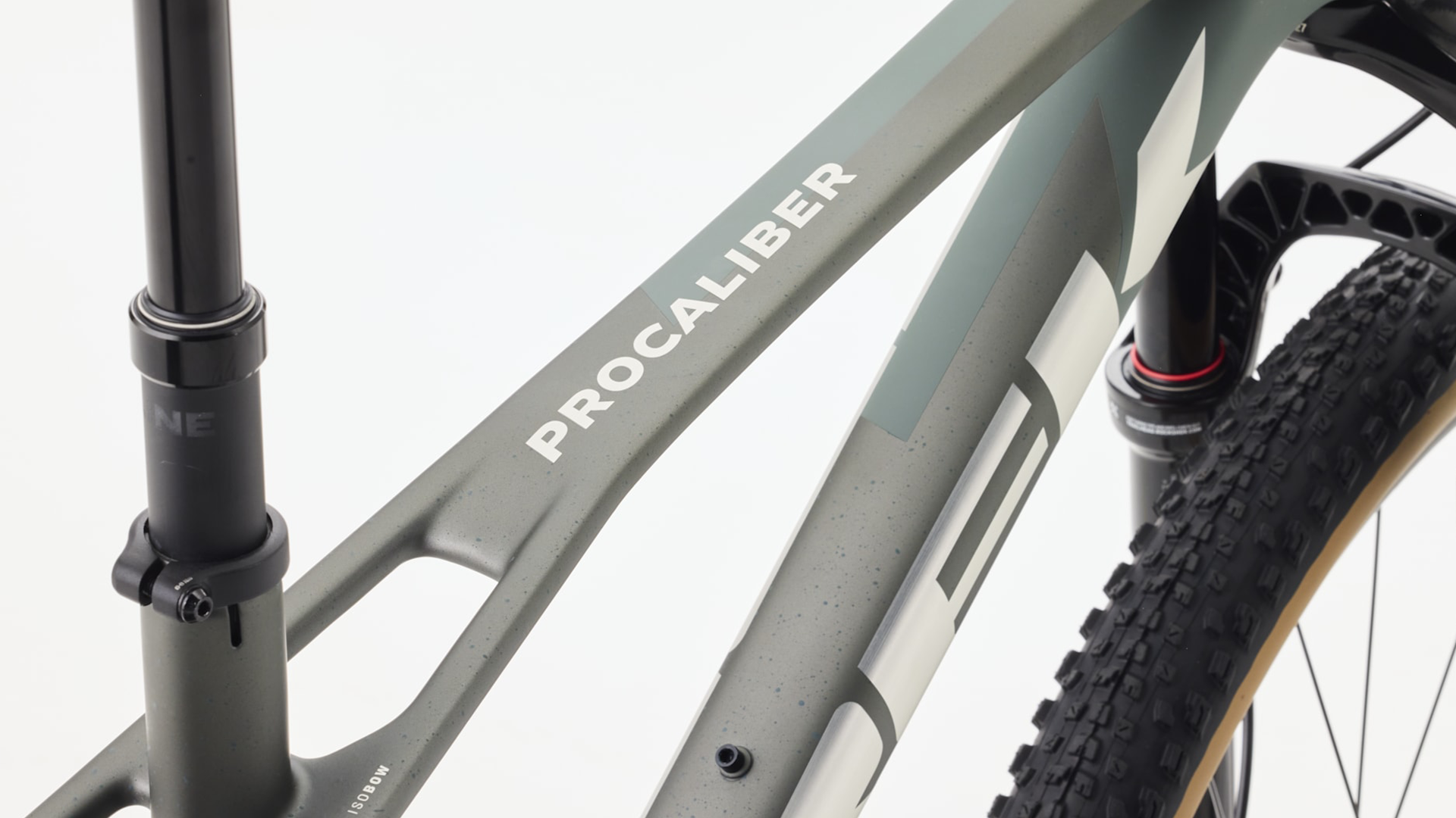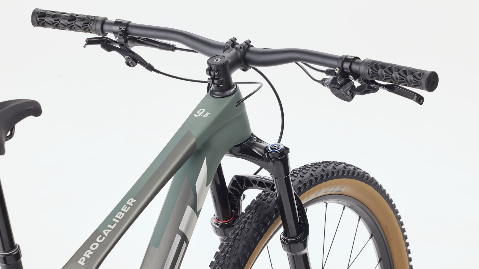Elegante e estável: Com um ângulo do tubo de direção mais descontraído do que a maioria das bicicletas de XC e com um curso maior de 120 mm, o comportamento seguro da Procaliber Carbon incita a pedalar a fundo.